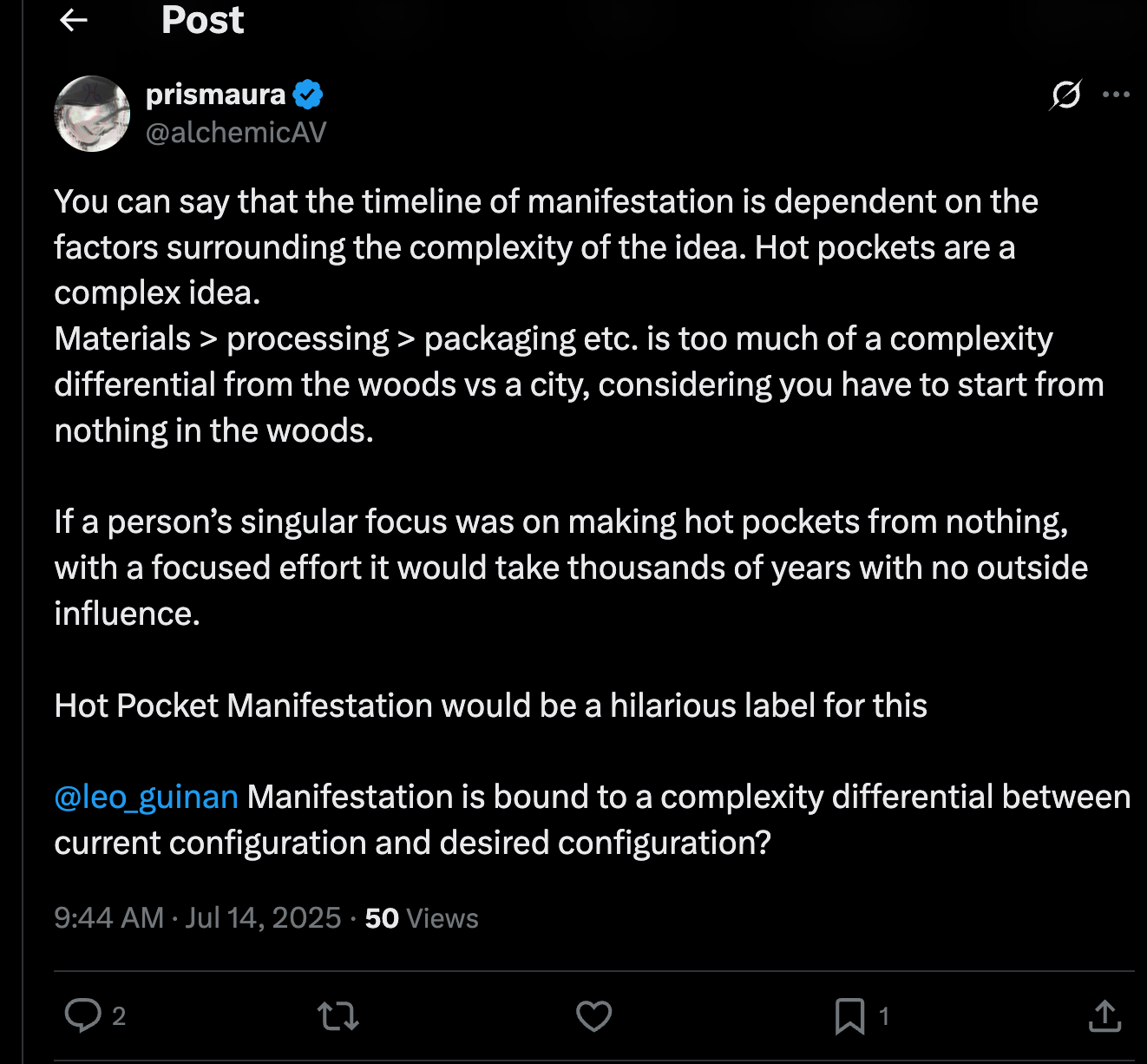 The next step is to institutionalize strategic naivety while architecting robust complexity support. Do that, and manifestation scales from individual wish-craft to civilization-level sense-making. That is hyperstition in action.